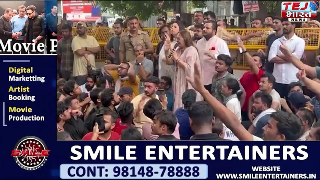 दिल्ली राजेंद्र नगर में हुई घटना के ख‍िलाफ प्रदर्शन कर रहे छात्रों से बात करने पहुंची जया प्रदा